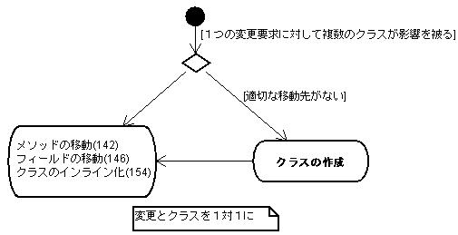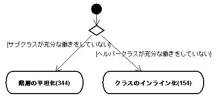 怠け者クラス(83)十分な仕事をせず、理解や保守のためのコストに見合わないクラスがあります。リファクタリングによるクラスのダウンサイジングにより不要になる場合や、変更を予期して作成したクラスが役に立っていない場合もあります。 ![]() |