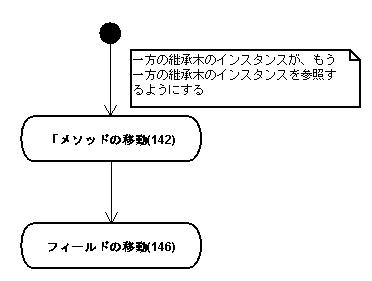 パラレル継承(83)「変更の分散」の特殊ケースです。新たなサブクラスを定義するたびに、 別の継承木にもサブクラスを定義しなければならない状況を示します。 一方の継承木のインスタンスが、もう一方の継承木のインスタンスを参照するように変更しましょう。 ![]() |