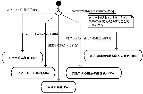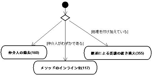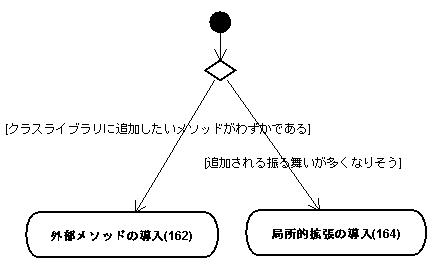 未熟なクラスライブラリ(86)クラスライブラリの修正が不可能である場合に、どのように振る舞いを追加するかの指針とな るリファクタリングがあります。 ![]() |