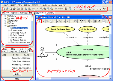 まず、JUDEの画面構成と基本的な共通操作を説明します。 | ||||||||||||||||||